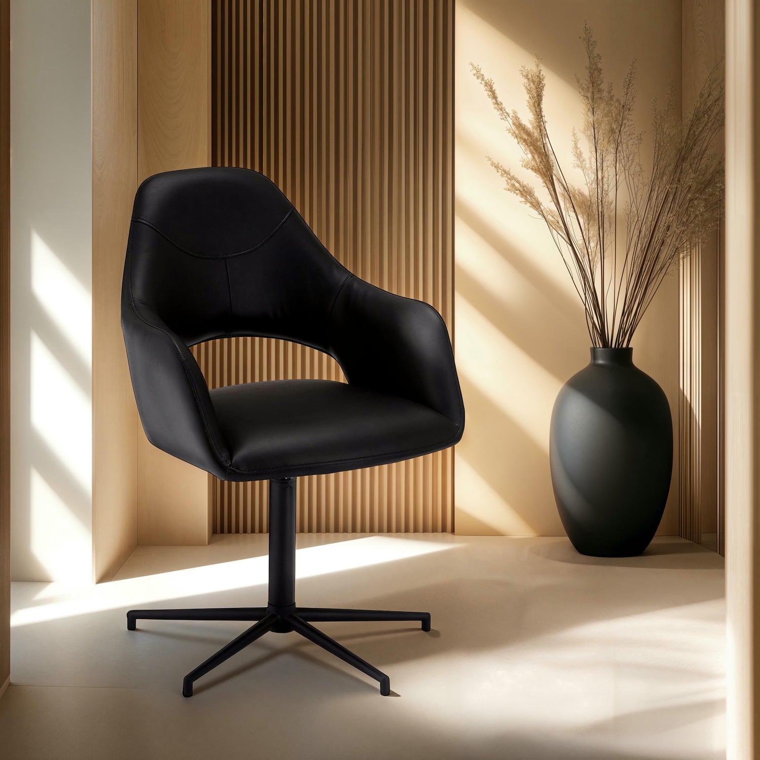 Isabel Esszimmerstühle mit Armlehne 2er Set - Drehbar, Kunstleder Schwarz -