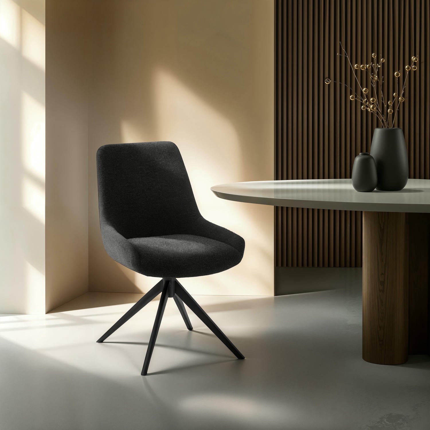 Helena Esszimmerstühle 2er Set - Drehbar, Bouclé-Stoff Schwarz -