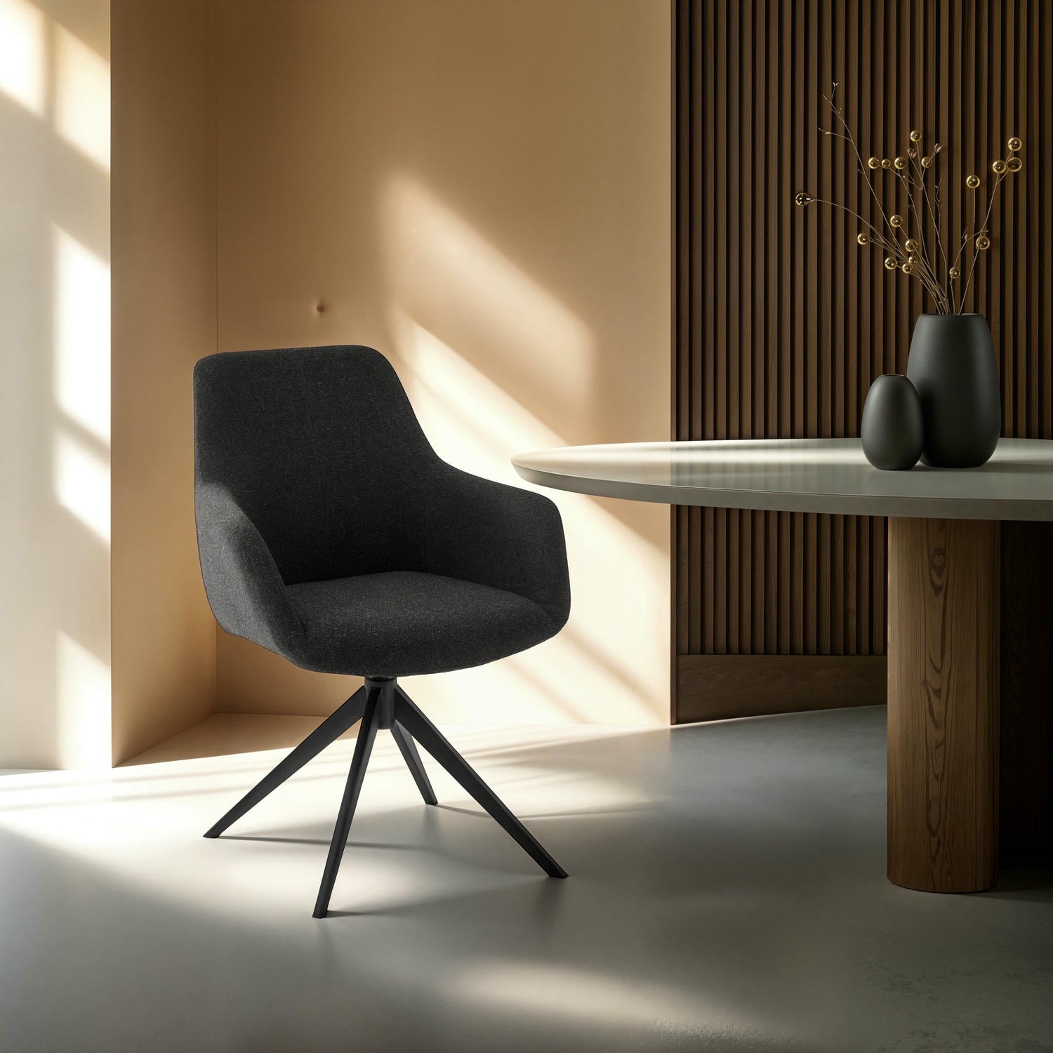 Helena Esszimmerstühle mit Armlehne 2er Set - Drehbar, Bouclé-Stoff Schwarz -