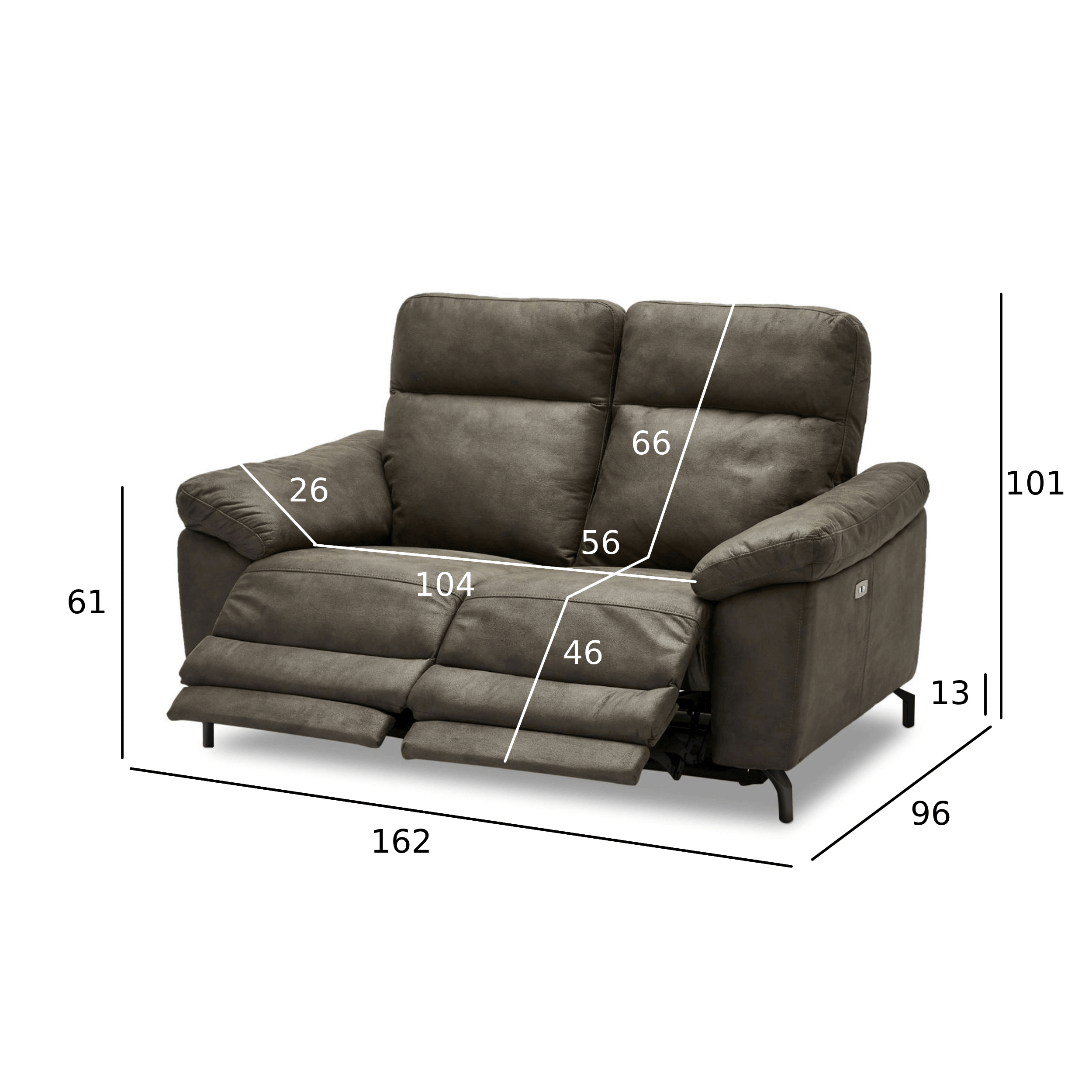 2-Sitzer Sofa - mit Elektrische Relaxfunktion, USB - Stoffbezug Taupe Grau