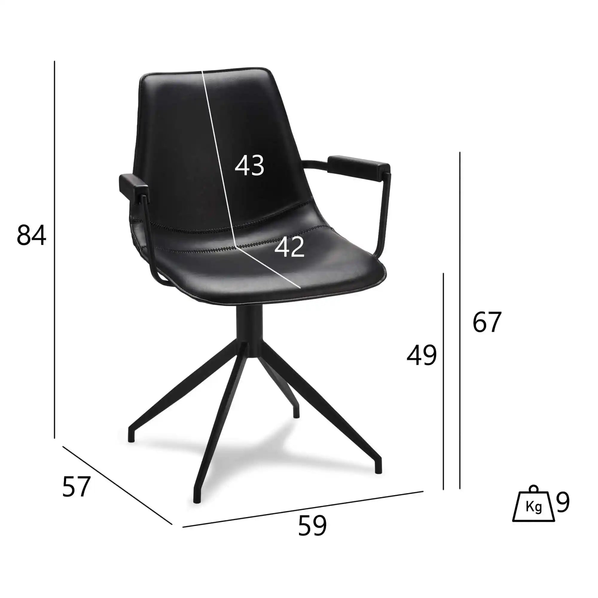 Isabel Esszimmerstühle mit Armlehne 2er Set - Drehbar, Kunstleder Schwarz
