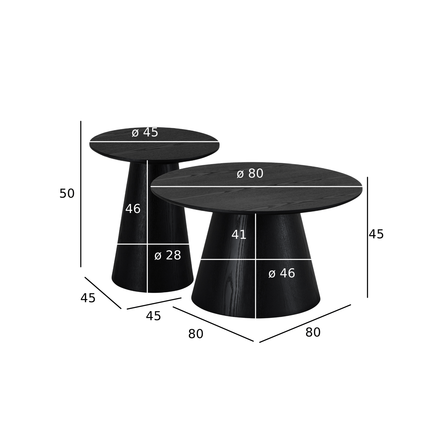 Couchtisch 2er Set ø45/80 cm - Eiche Schwarz