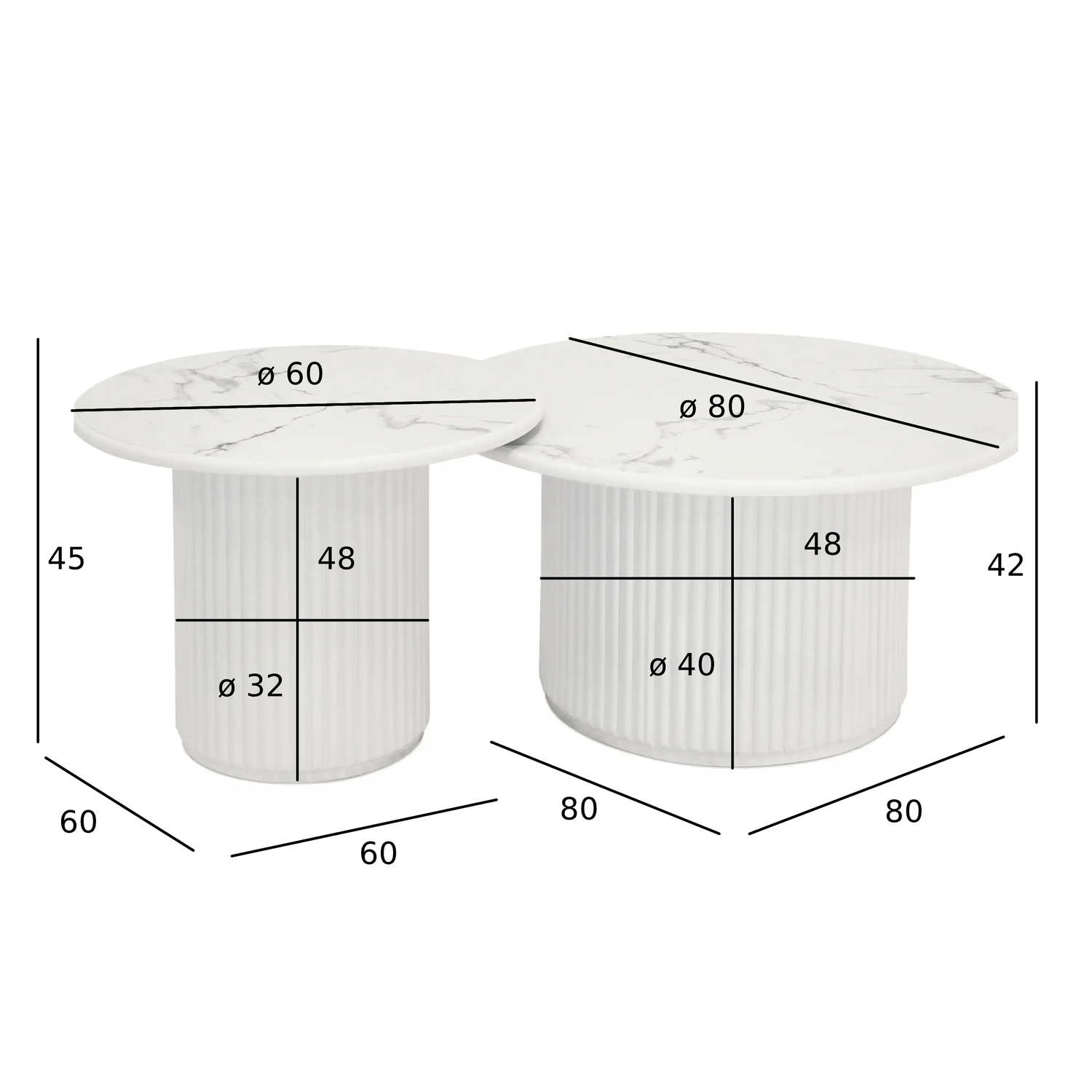Couchtisch 2er Set ø60/80 cm - Marmoroptik & Lamellenoptik Weiß