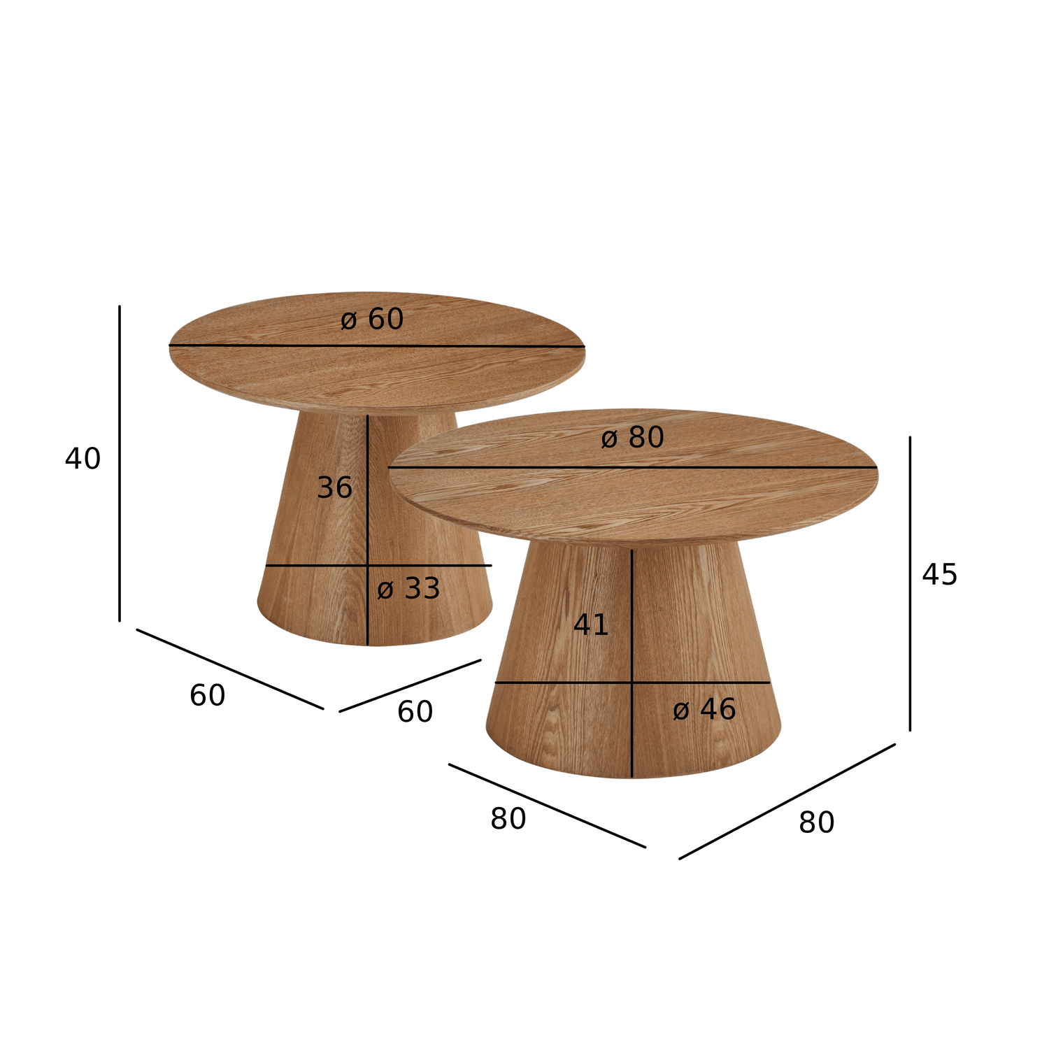 Couchtisch 2er Set ø60/80 cm - Wildeiche Natur