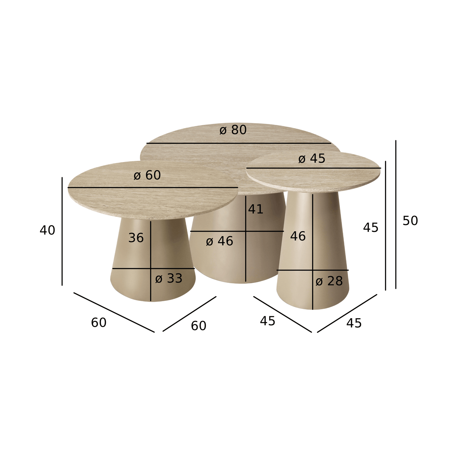 • Mittlerer Tisch: ø60 × 40 cm