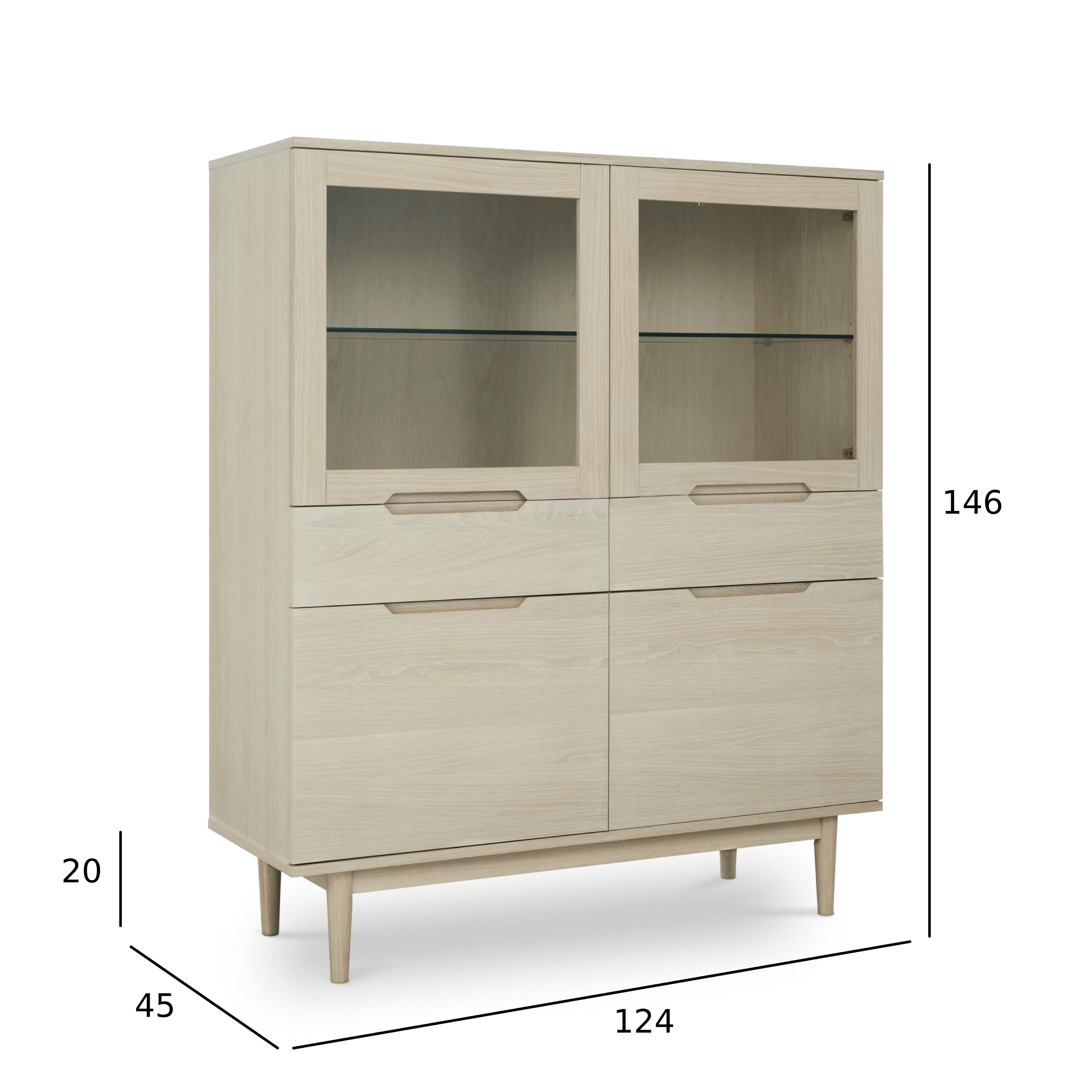 Highboard mit LED-Beleuchtung - 124 cm breit - Eiche bianco
