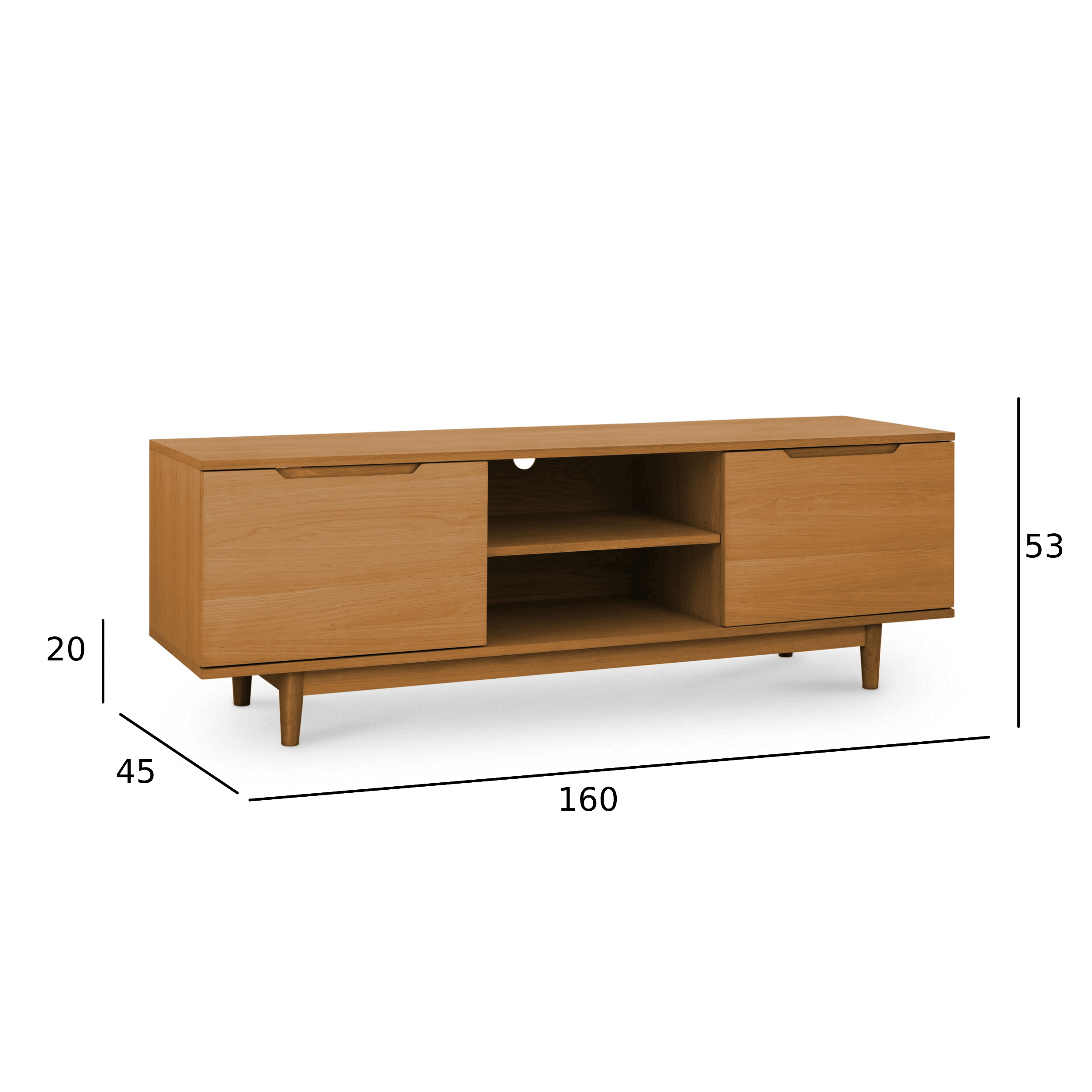 TV-Tisch mit 2 Türen - 160 cm breit - Wildeiche