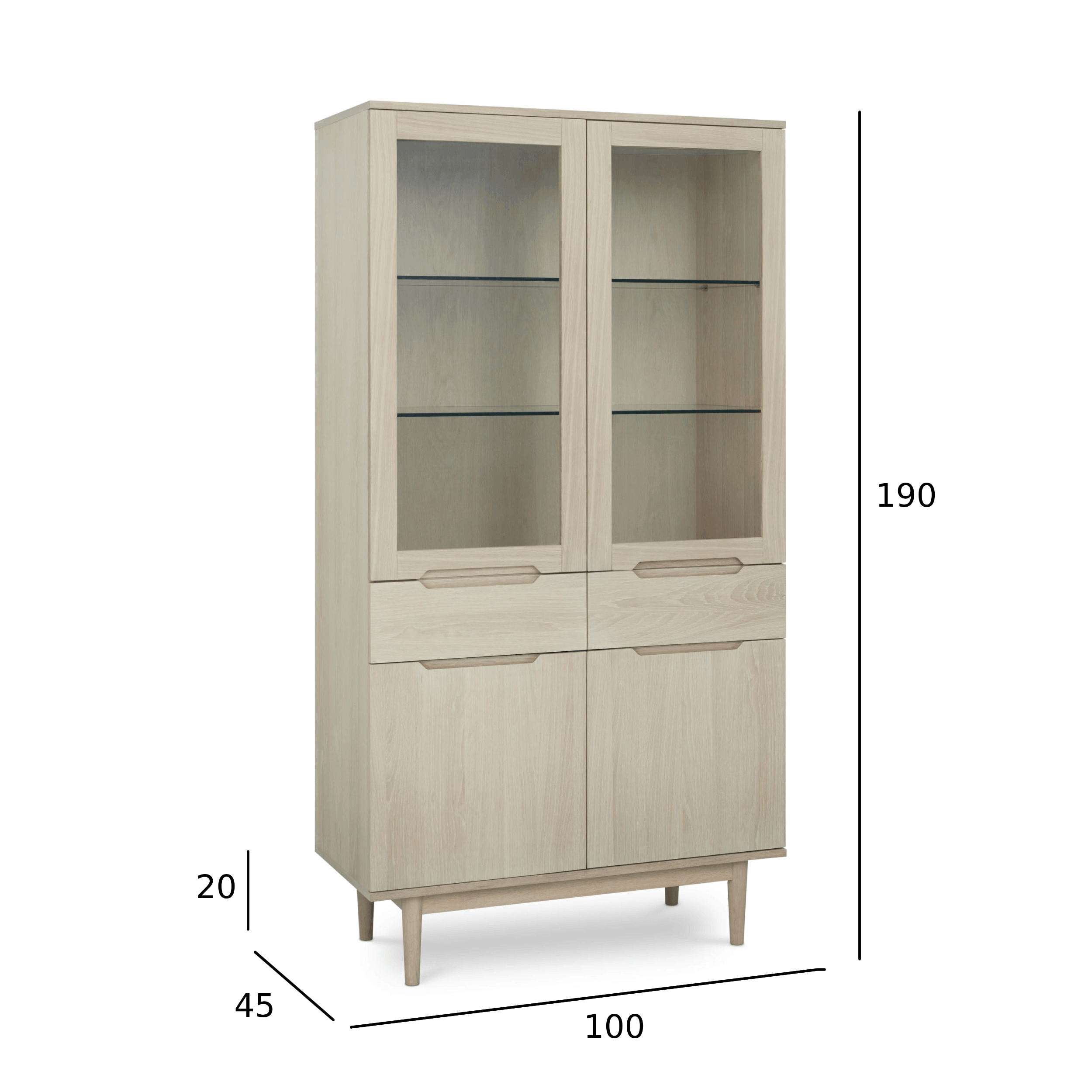 Vitrine mit LED-Beleuchtung - 100 cm breit - Eiche bianco