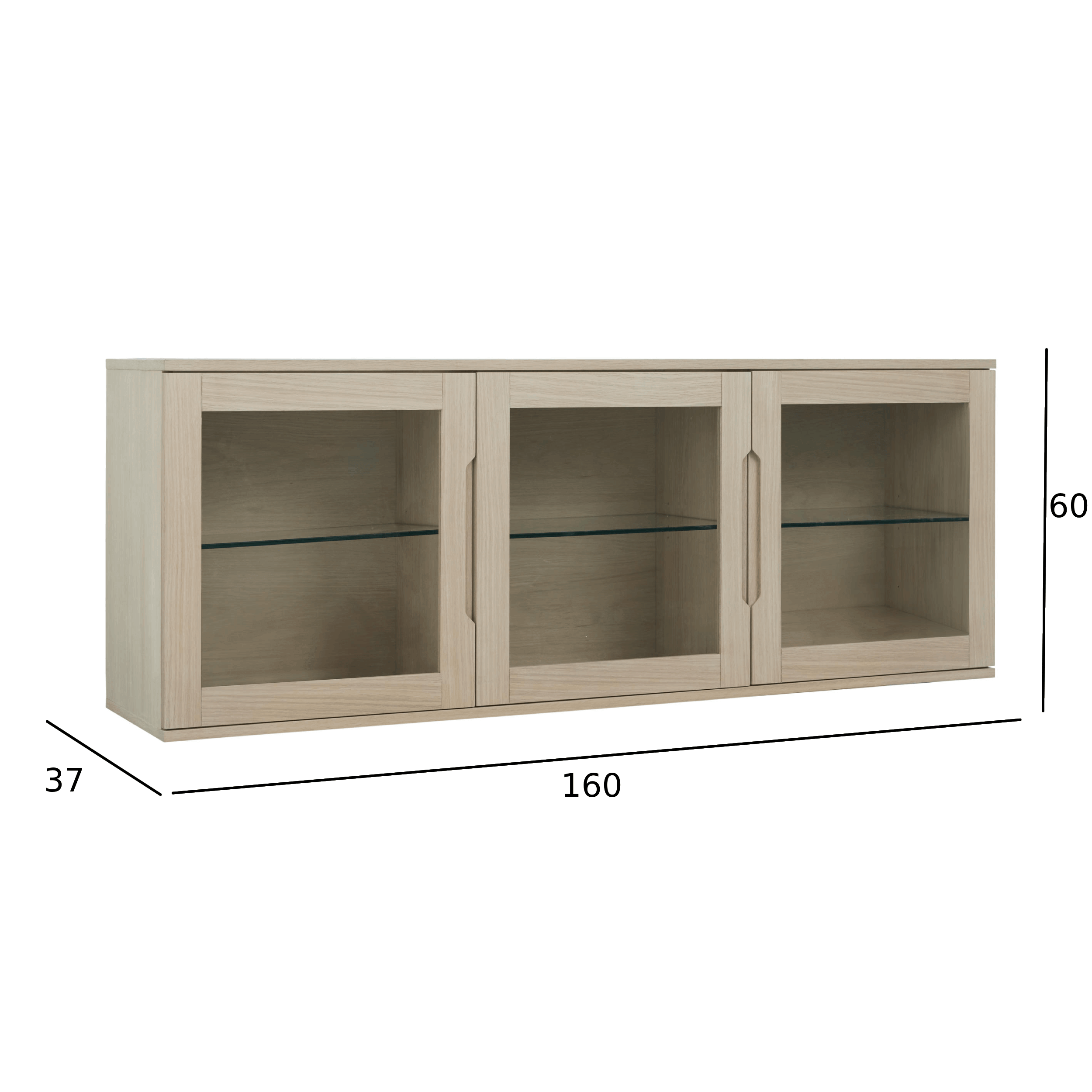 Wandschrank mit LED-Beleuchtung - 160 cm breit - Eiche bianco